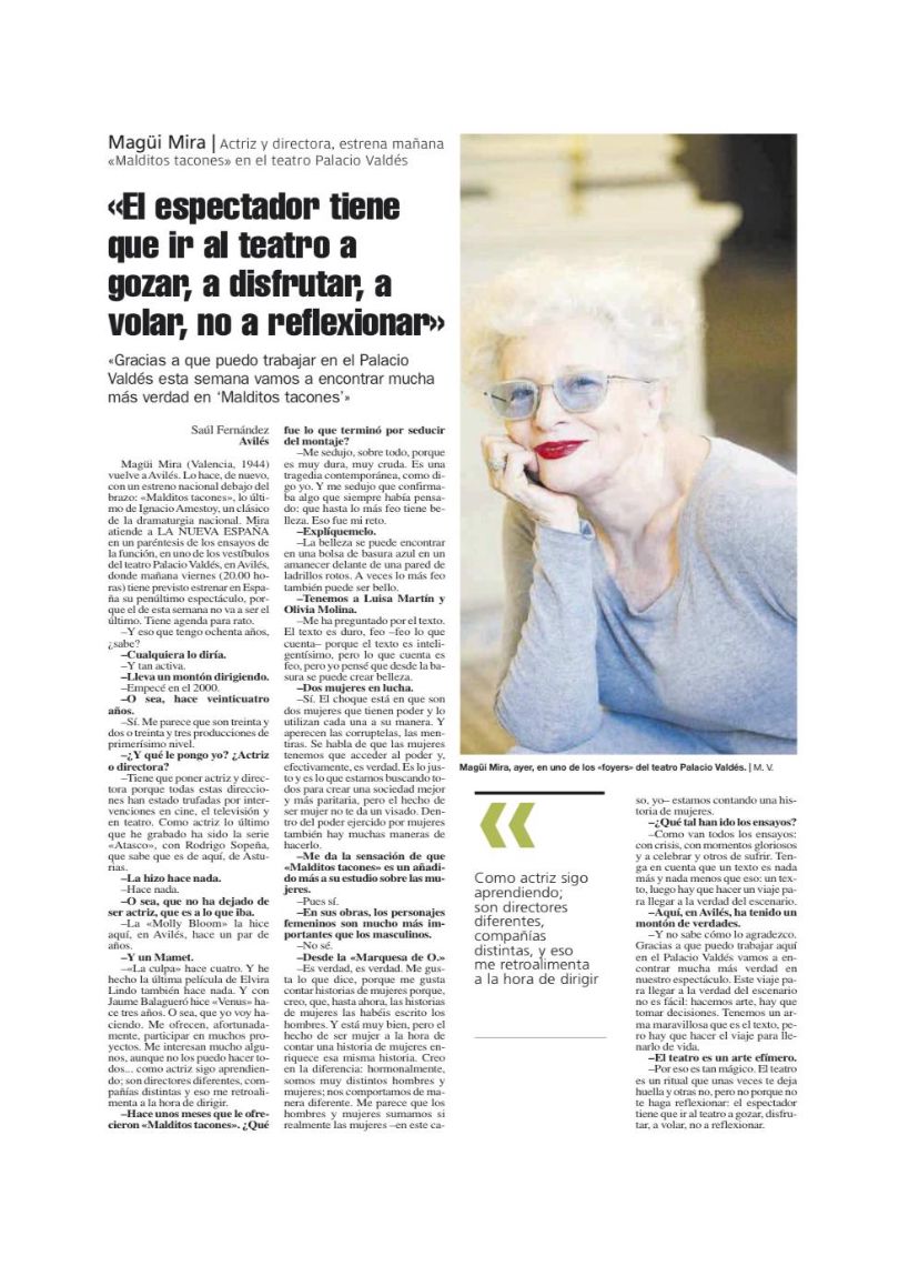 Entrevista: Magüi Mira: “El espectador tiene que ir al teatro a gozar, a disfrutar, a volar,; no a reflexionar”
